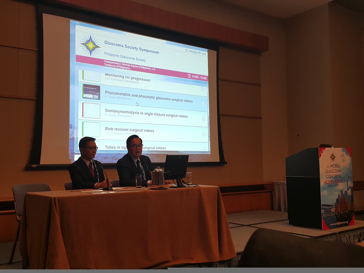 The 6th World Glaucoma Congress (WGC) was successfully held at the Hong Kong Convention and Exhibition Center from June 6-‐9, 2015. WGC is one of the premier glaucoma meetings and is organized by the World Glaucoma Association (WGA). It is held every 2 years and the venue rotates throughout the different continents. The Philippine Glaucoma Society (PGS) actively participated in this year’s WGC with 31 PGS members attending, exchanging ideas with glaucoma colleagues, contributing to the scientific program and supporting the initiatives of the WGA. There were also other delegates from the Philippines who attended, which highlighted the strong Filipino presence in this meeting.
